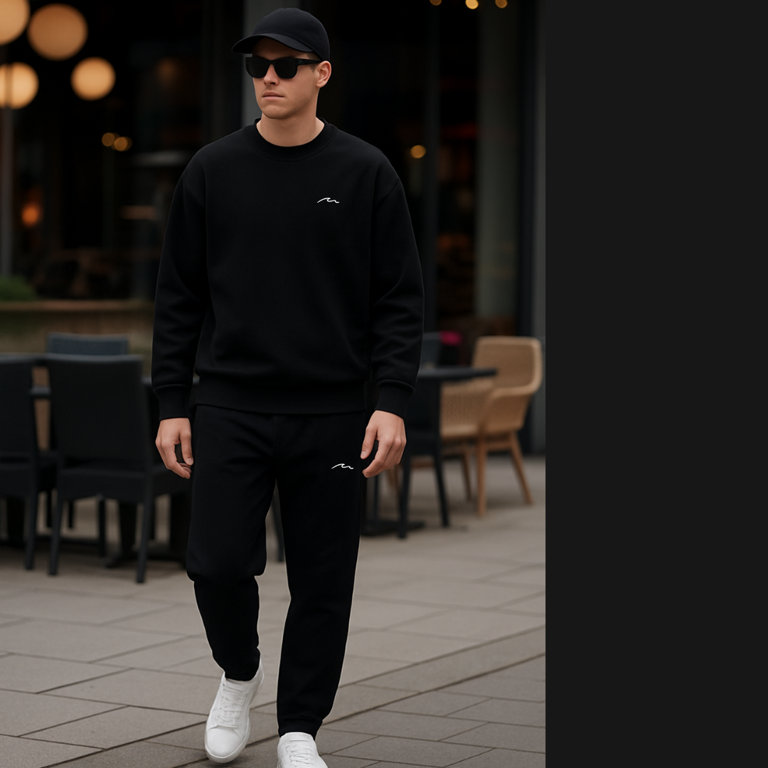 THE BLACK DUO kombiniert die zwei stärksten Pieces der Black Line: den oversized Sweater und die Joggers.